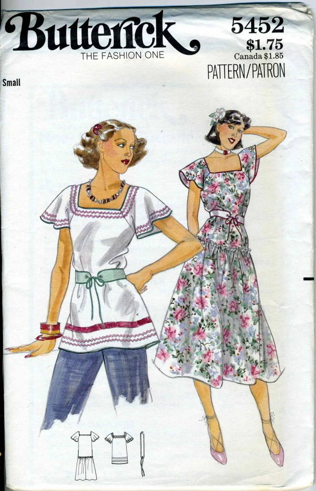 Butterick 5452 Vintage 1970s Top And Dress Sewing Pattern The Vintage Pattern Market